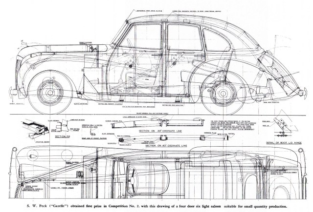 The car design below is his entry for an International Competition organized by the British Carriage and Automobile Manufacturers. He won first prize in that competition for his 1948 design for a Saloon body for a TA 14 chassis. Very interesting to look at how he modernized the design but not sure about the radiator although the TB 14 prototype without the Alvis radiator was around then. Does anyone fancy putting it on a spare Fourteen chassis?