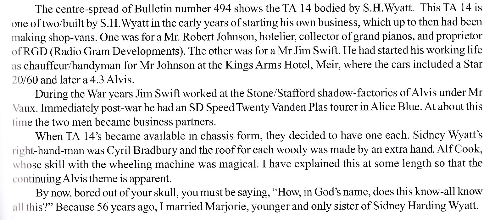 Was it the same Alf Cook who was foreman at the Alvis Service Department in Job’s Lane Coventry during the 1960’s? If so, his brother, Len, was a fitter in the Service department a the same time, specialising in front suspension. Alf’s son, Ron Cook had 50 year’s service with Alvis, much of it in the Experimental Department, where he was Superintendent. Never a family firm in the conventional sense, but there were several examples of Alvis employing members of the same family for many years.