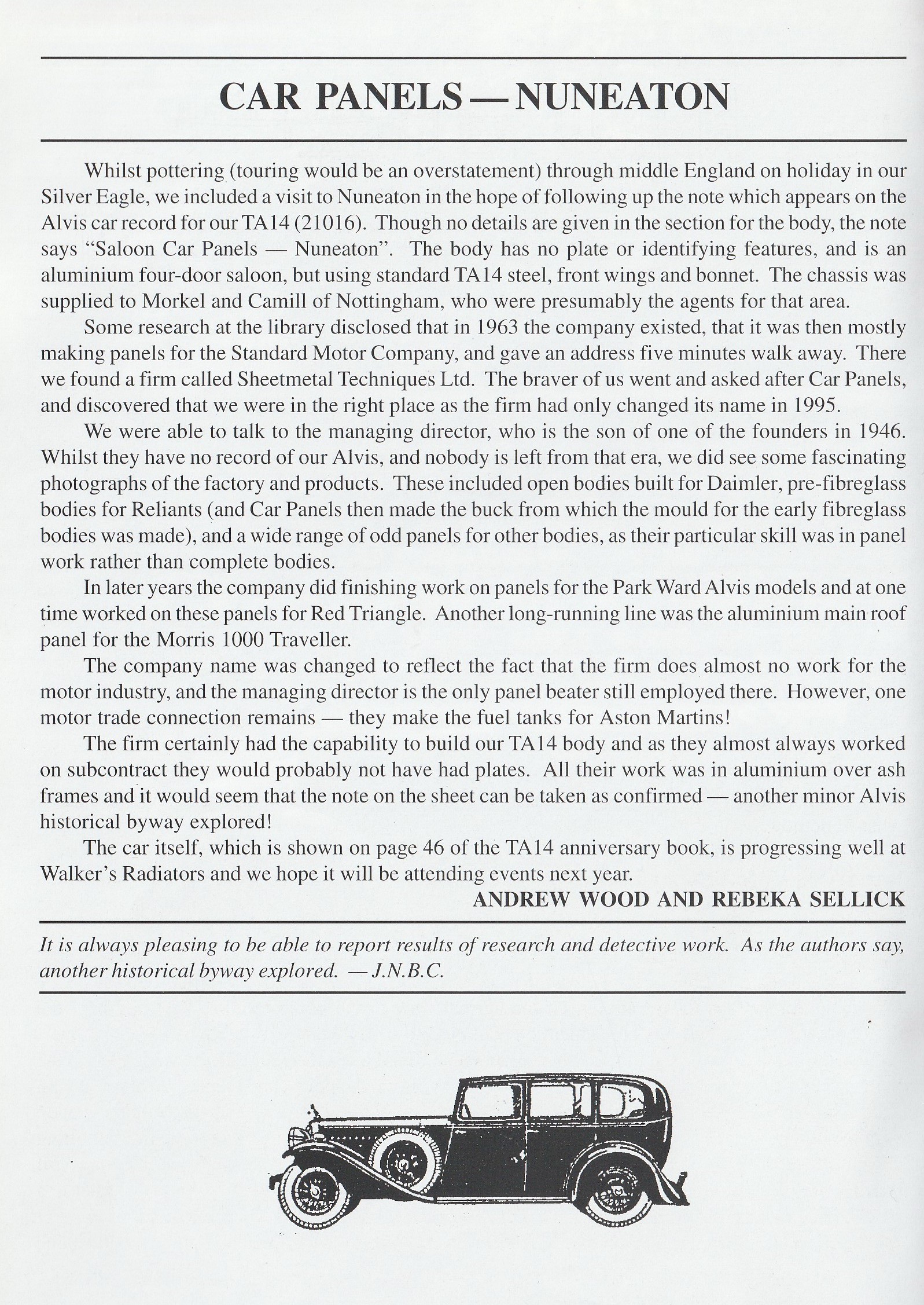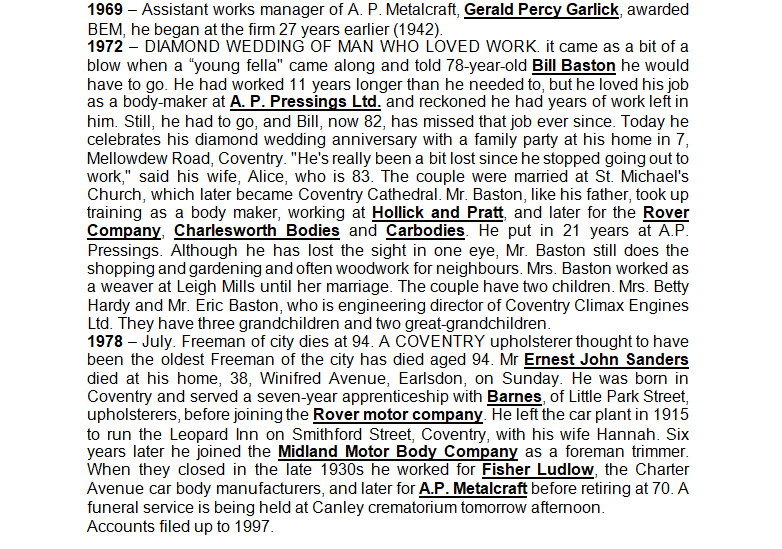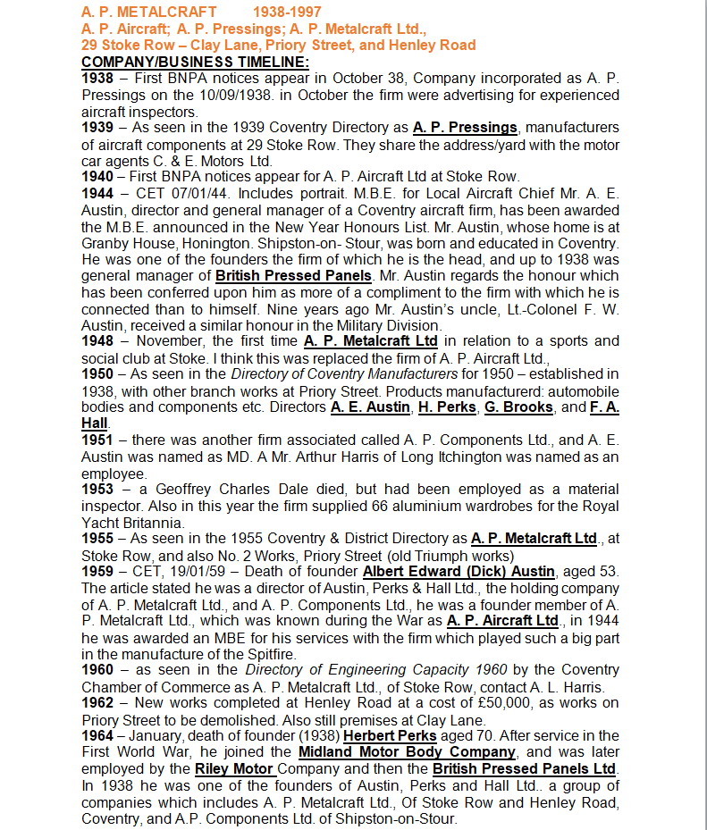 For TB 14 owners there has always been a dearth of information about the Coachbuilder, A.P.Metalcraft. Very kindly the Herbert Museum has provided some notes that help to flesh out the bones for us.