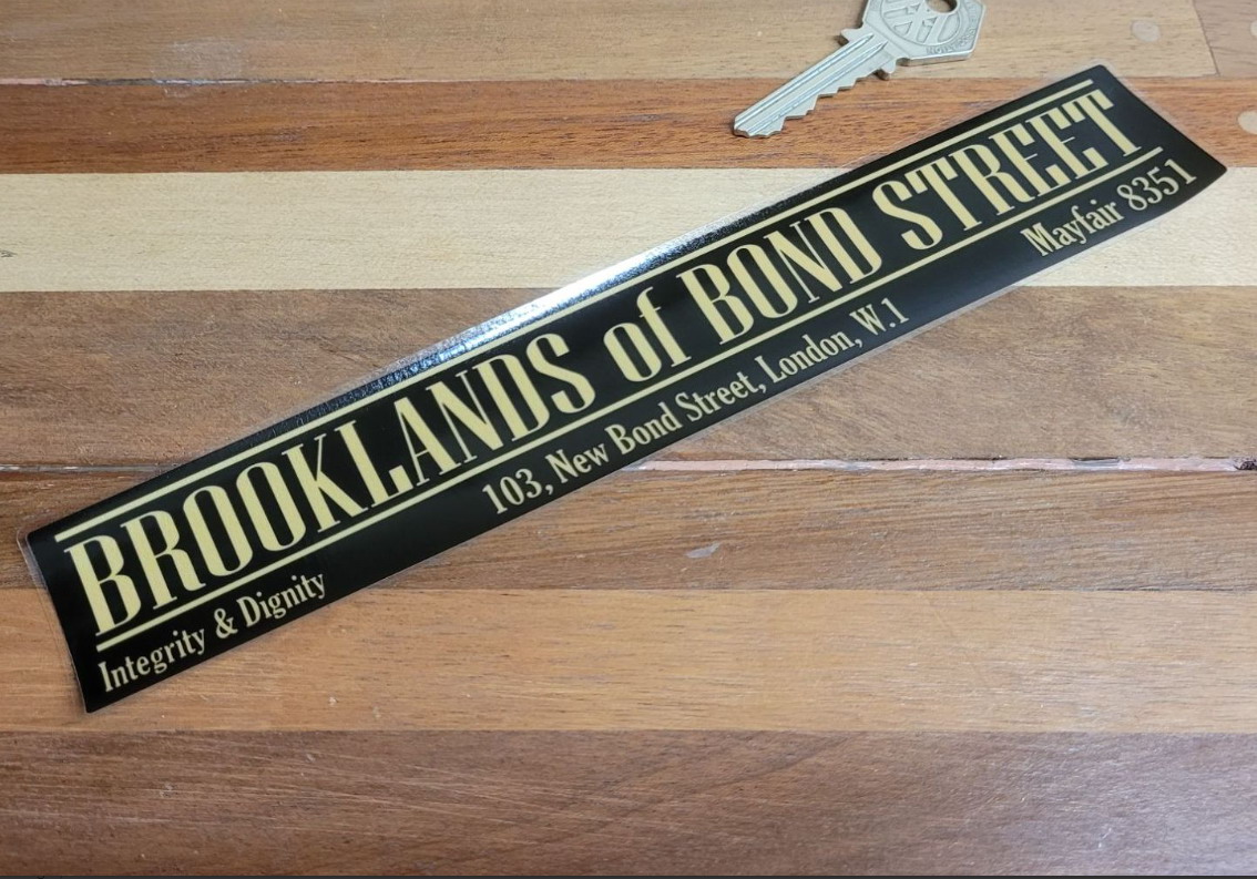 This reproduction 9 inch dealer sticker is a bit of fun and not too pricey under £5 on the internet. With the slogan for the Brooklands Dealership being ‘Integrity and Dignity’, what could be better?