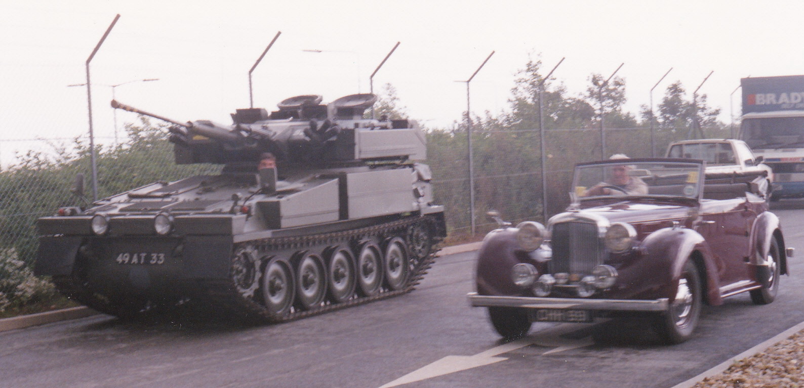 Harold Cook in the driver’s seat, note Alvis liveried lorry in the background.