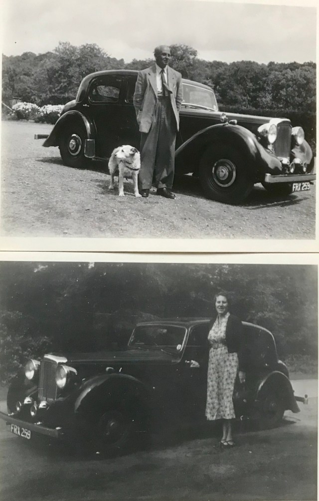 Shows Mr W.E. Challice, Alvis Agent with his daughter Wendy.